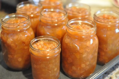 Process in a hot water bath for 15 minutes. Turn off heat and remove lid. After 5 minutes remove jars from hot water bath, let cool, check seals, label, and store.